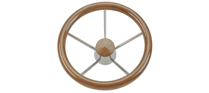 Udført i rustfrit poleret stål med lakeret teakkrans og pynteknap.